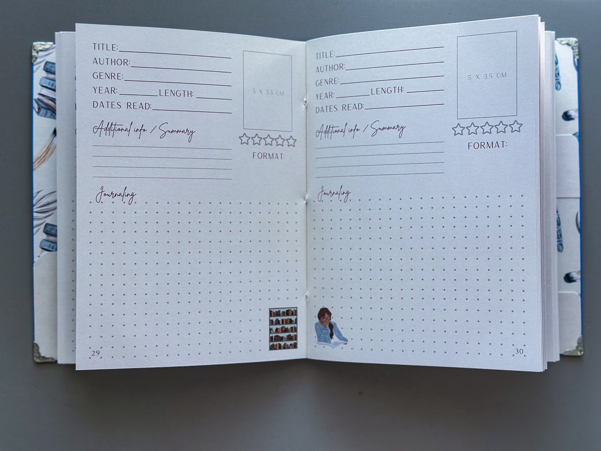 - 80 pre-designed 200 gsm book review pages - perfect for markers (no bleeding)